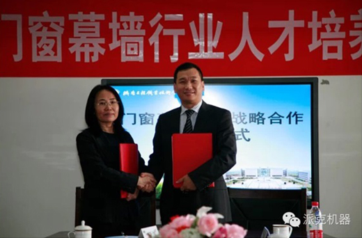 派克機器將一如既往的支持門窗幕墻學院的發展和壯大,在前期聯合打造的學院實訓基地、幕墻人才網的基礎上,進一步與門窗幕墻學院開展校企合作,實現多方共贏,為推動行業的人才培養做出貢獻。